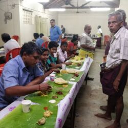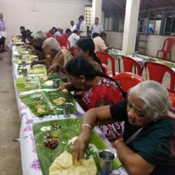 In addition to the variety mentioned above, one more specialty is, as can be seen in the accompanying images, bhagavathars, bhakthas and organizing committee members are sitting and eating together without any discrimination.