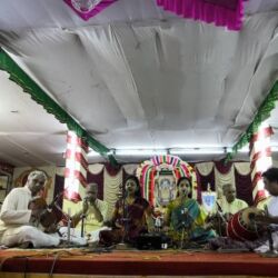 Since the silver jubilee year, it has been a practice to host two Carnatic concerts, vocal or instrumental, Friday and Sunday evenings each. They replaced Mrs. Kamala Moorthy’s Harikatha pravachanam (narrating stories from the Scriptures[Purana]).