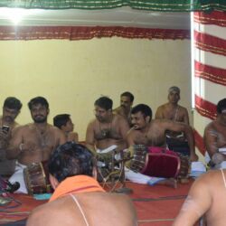 Singing of Ashtapathi songs continued along with panchapathi (songs of 5 languages) and gurukeerthanas. Sixteen Ashtapathis were sung by the end of the first day.