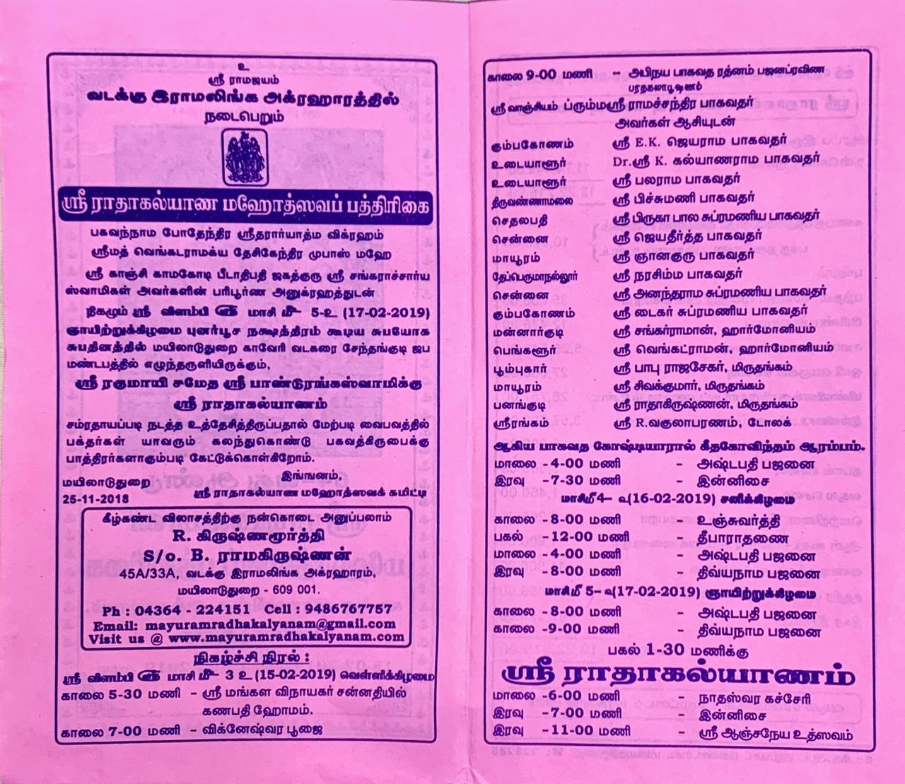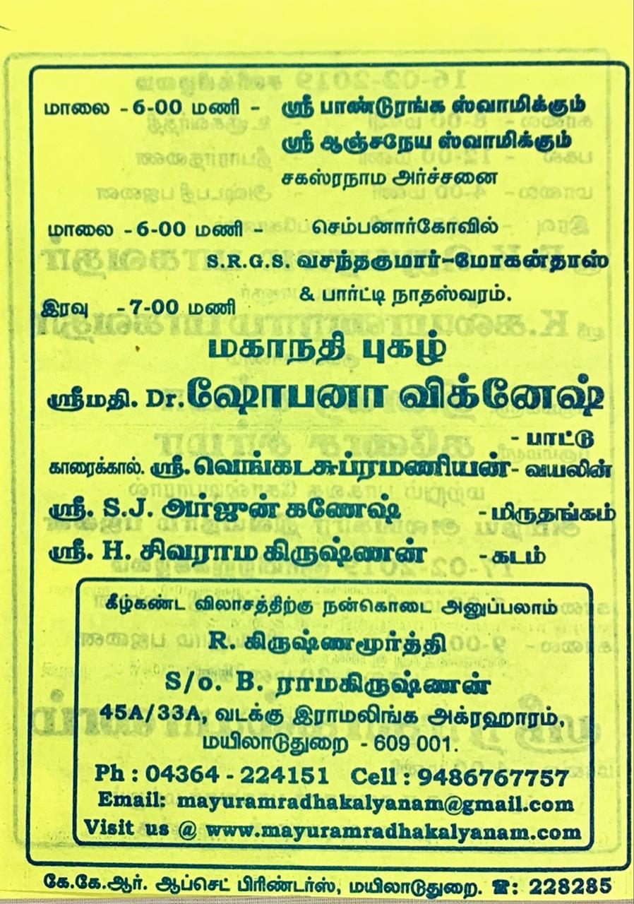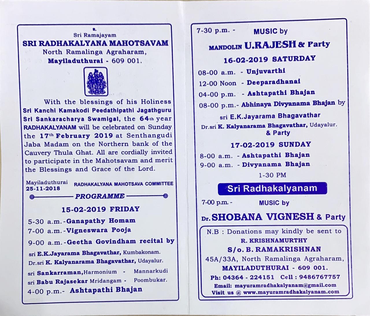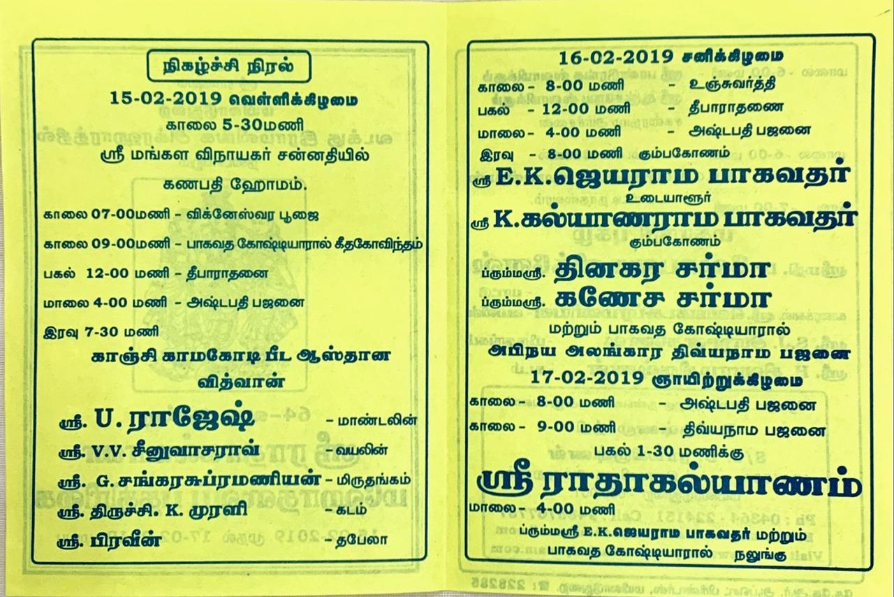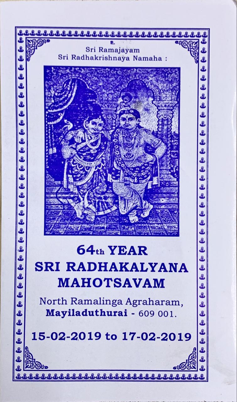 By the grace of Lord Pandurangan the 64th year of celebrations are planned to be conducted on 15th, 16th, and 17th of February 2019 at Vallalar Koil Mandapam, North Ramalinga Agraharam, Mayiladuthurai.
